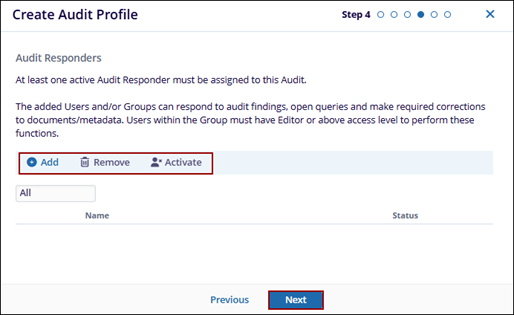 - In Step 4, add, remove, activate, deactivate audit responders by repeating steps related to adding auditors.