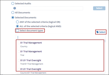 - In the Documents to Audit field, choose any one options by clicking their respective