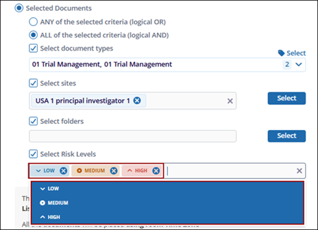 - Select Risk Levels: Click the dropdown menu and select the risk