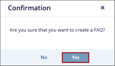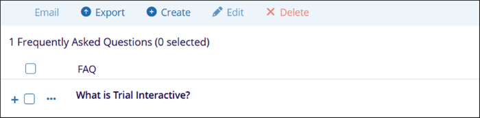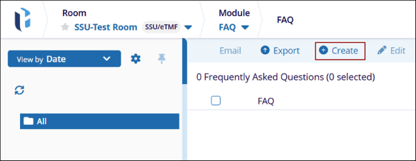 - Within the FAQ module, click on the +Create button from the top menu bar.