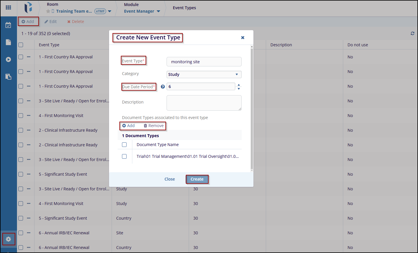 Once an appropriate Event Type has been defined, users can create specific events based on it. The eTMF team can update events at any time to ensure they reflect the latest content. Each created event will display its eTMF Health measurement at the study, country, and site levels.