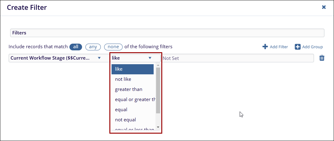 - The filter will appear above the grid. Select the filter to apply it to the grid contents
