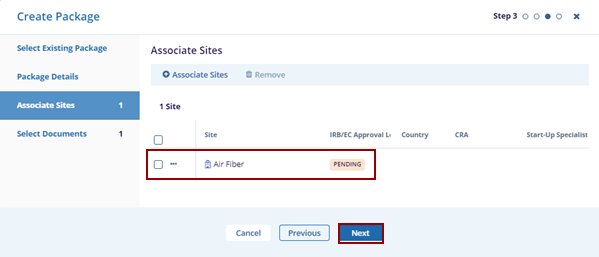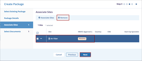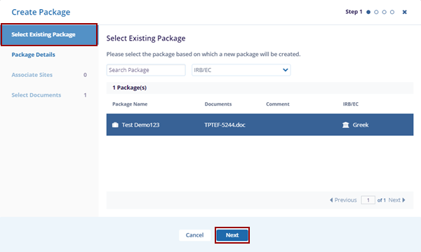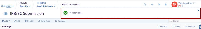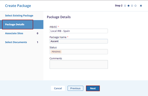 - In the Package Details tab, fill in the required fields – IRB/EC, and Package Name.