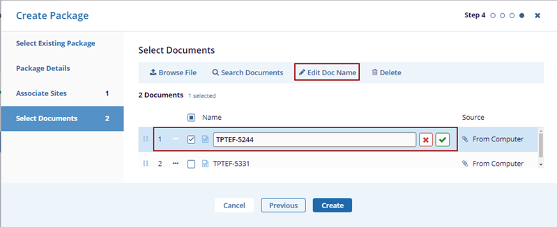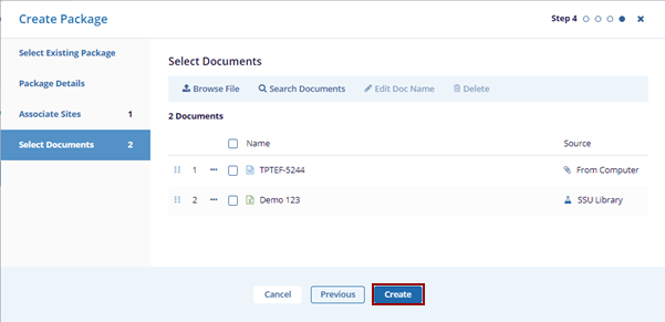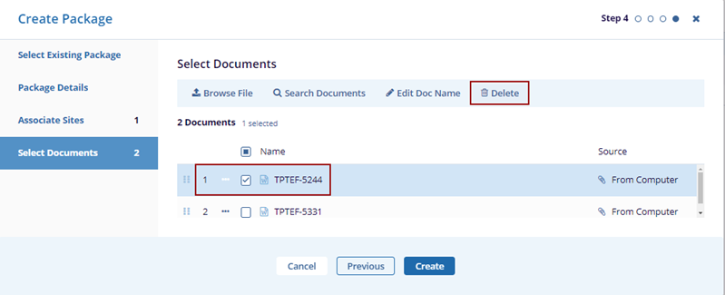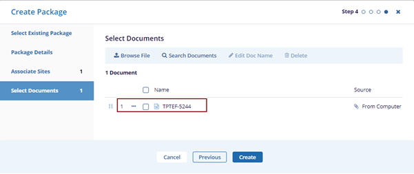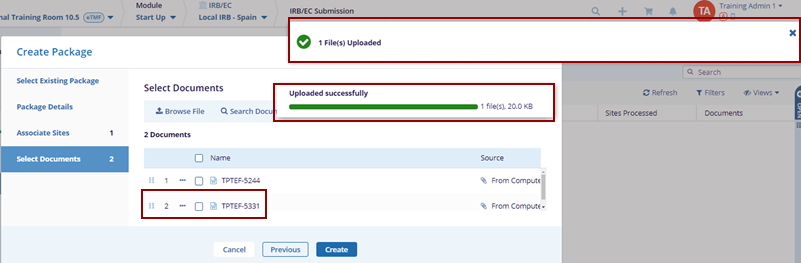 - The selected file is uploaded in the Select Documents section and the notification message is displayed on the screen.