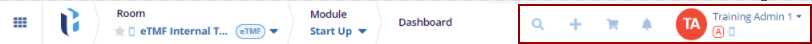 - Bell icon and Username: Displays the notifications and users can access the following: