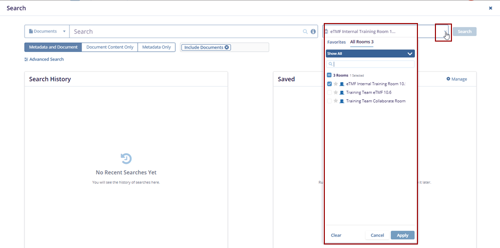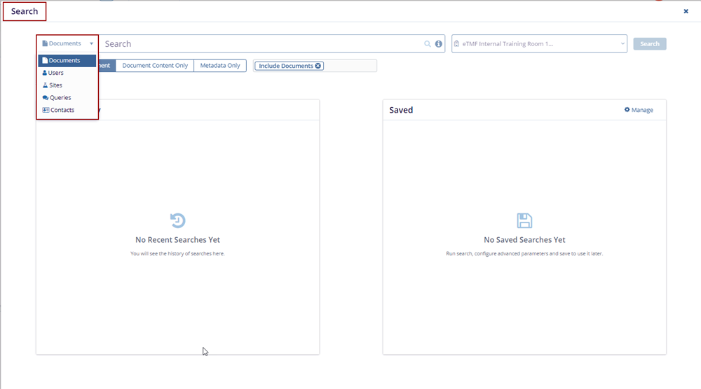Expand the Documents arrow to search by Documents, Users, Sites, Queries, and Contacts.