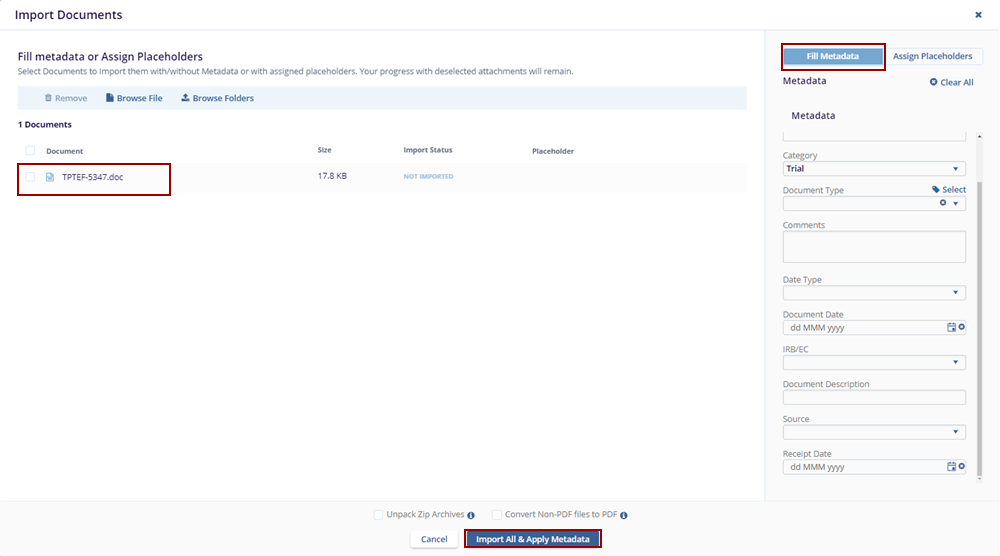 - The user can also assign the placeholders by clicking on the Assign Placeholders option.