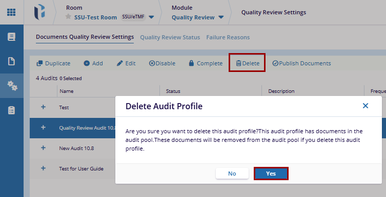An audit can only be deleted if no document has been reviewed. Once a document has been reviewed as part of the audit, the audit can only be stopped, not deleted.
