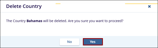 - On the Delete Country confirmation pop-up, click on the Yes button.