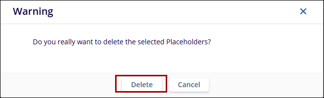 A confirmation dialog appears asking, “Do you really want to delete the selected placeholders?”