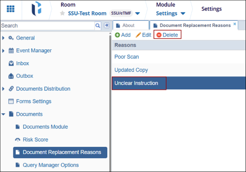 - Select the reason from the available list of reasons and click Delete from