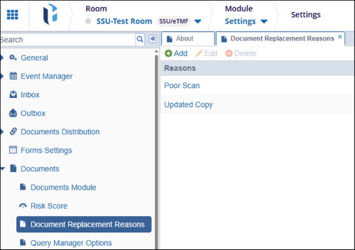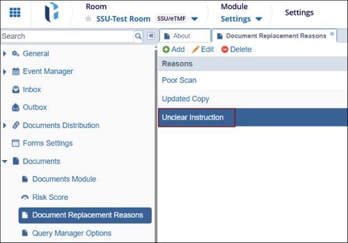 - Navigate to Navigation Grid->Settings -> Documents -> Document Replacement Reasons.