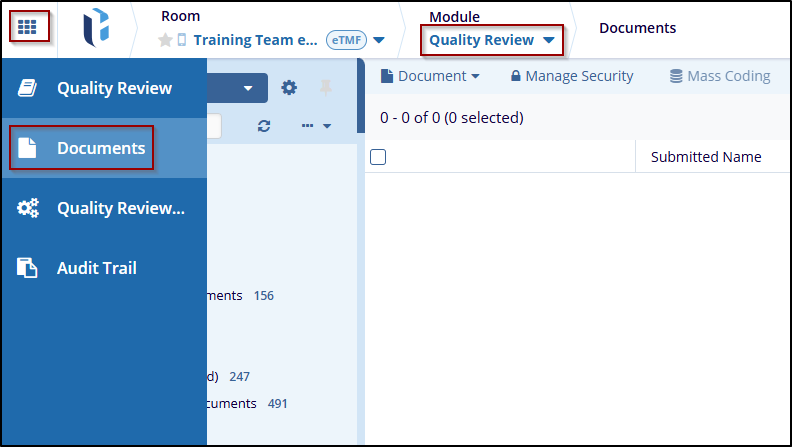 The documents are then subjected to Quality Control and Quality Review checks as per FDA regulations. Users can access the Documents View by clicking the Documents icon in the menu bar on the left-hand navigation pane.
