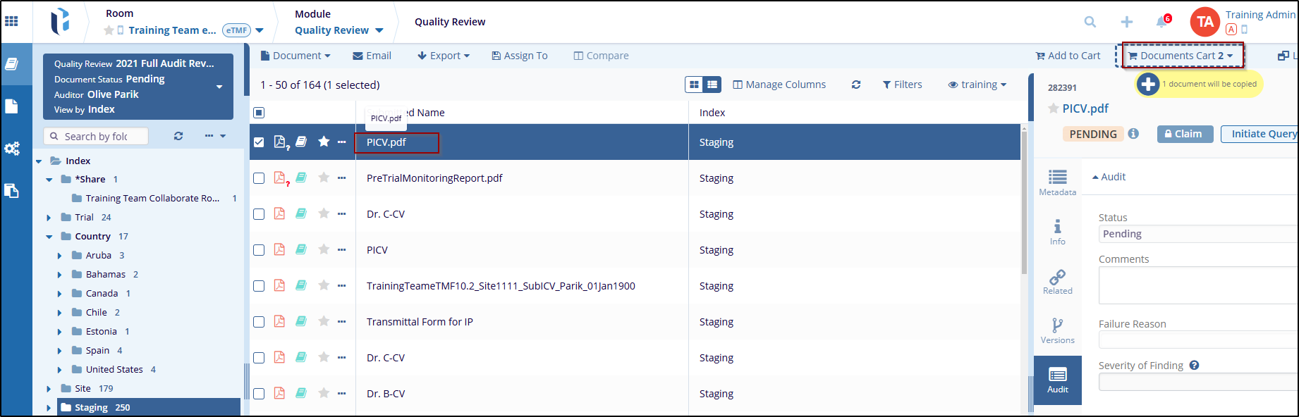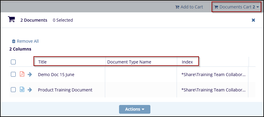 - In the grid view, Hover over the document that needs to be added to the cart.