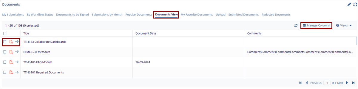 - To customize the columns displayed in the document list, click