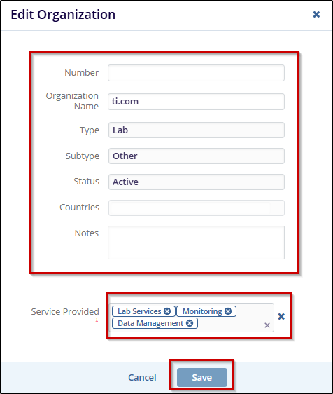 On the Edit Organization window, make the necessary changes to the organization details, such as: