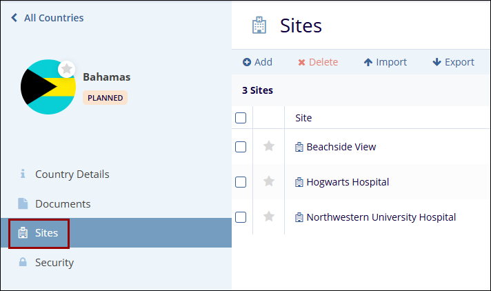 Note: Refer to the Sites section to add sites and perform the other functions.