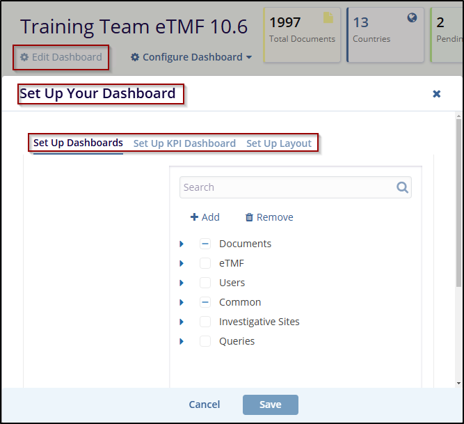 - Once clicked on Edit Dashboard, the Set Up Your Dashboard window will appear.