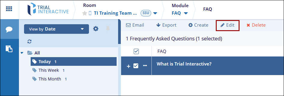 - Select an FAQ to edit by clicking on the checkbox.