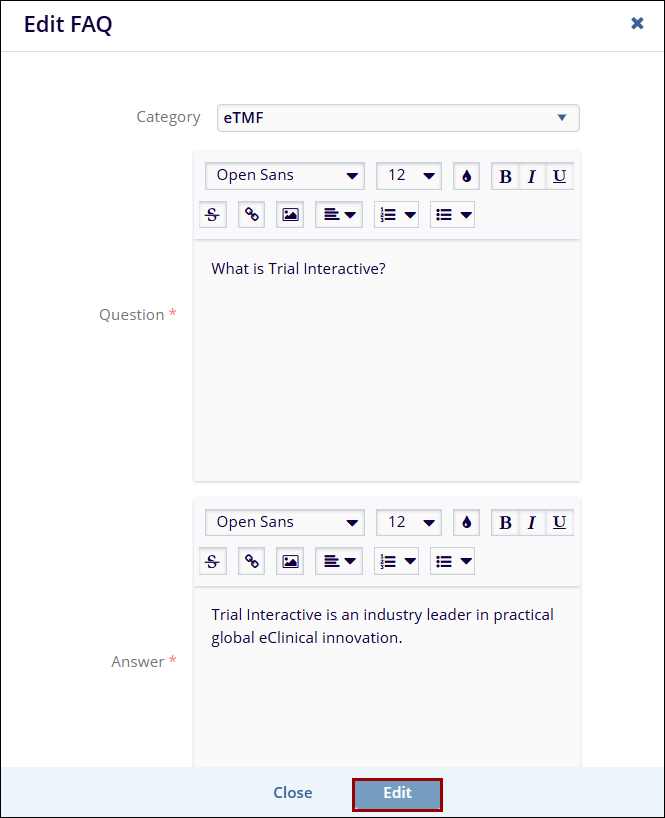 - Make the required changes in the Edit FAQ window.
