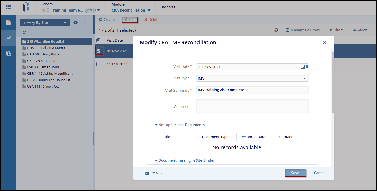 - Select the required site from the Reports and click the Edit button on the top ribbon.