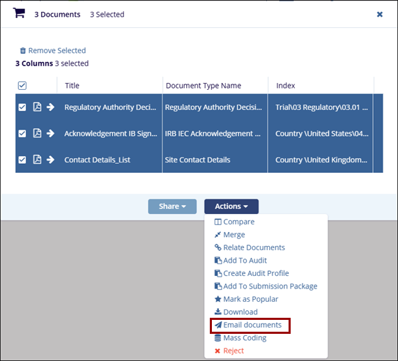 Add the required documents to the Documents Cart and click the arrow next to it to open the Documents Cart window.