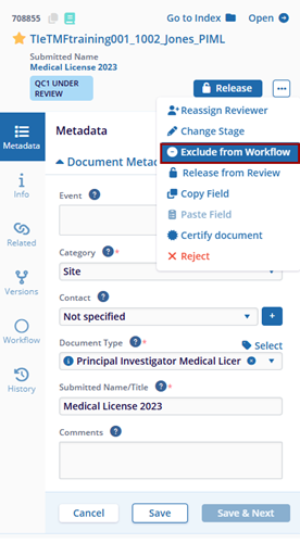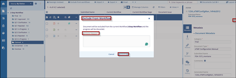 Workflow. This will cause the Exclude document from Workflow window will open.