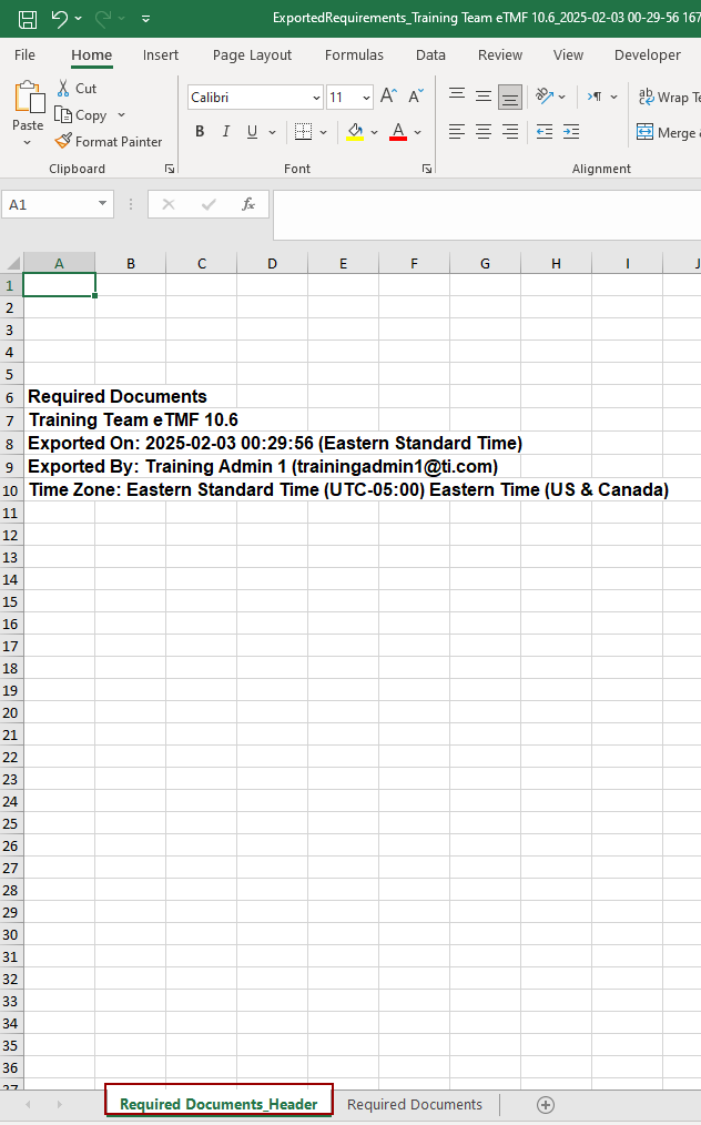 - An excel file is generated with a list of required documents and you can save the file for your records.
