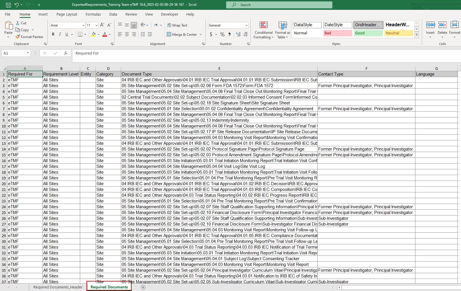 Activation Requirements, or eTMF documents. Refer to the screenshot