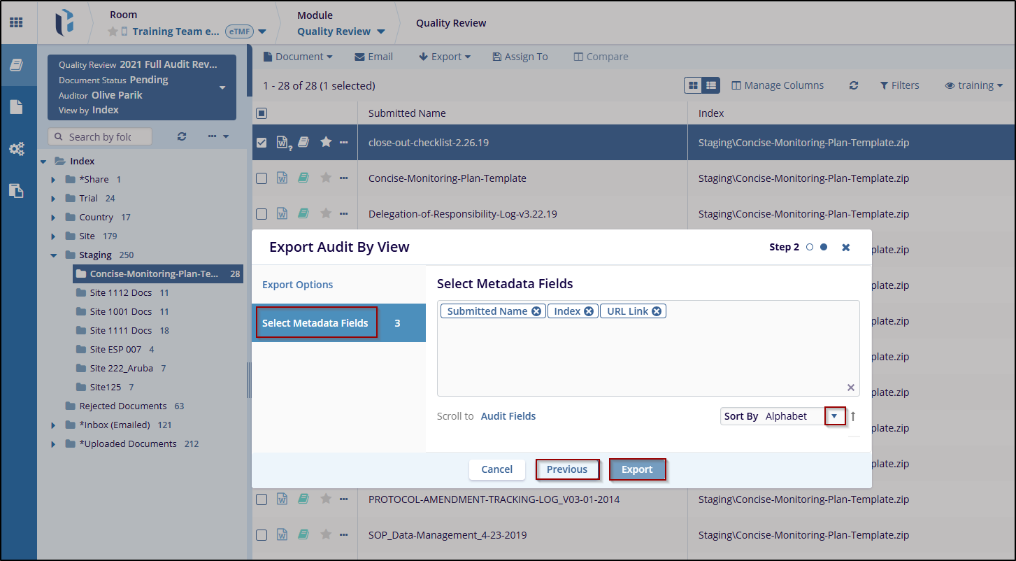 - Check the boxes next to the metadata fields that need to be included in the export.
