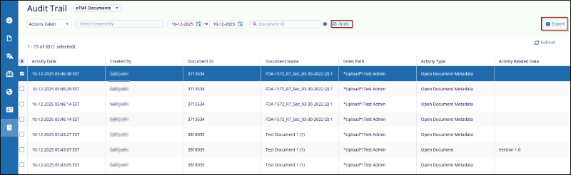 - On the Audit Trail Export popup displaying the success message, click on the Get