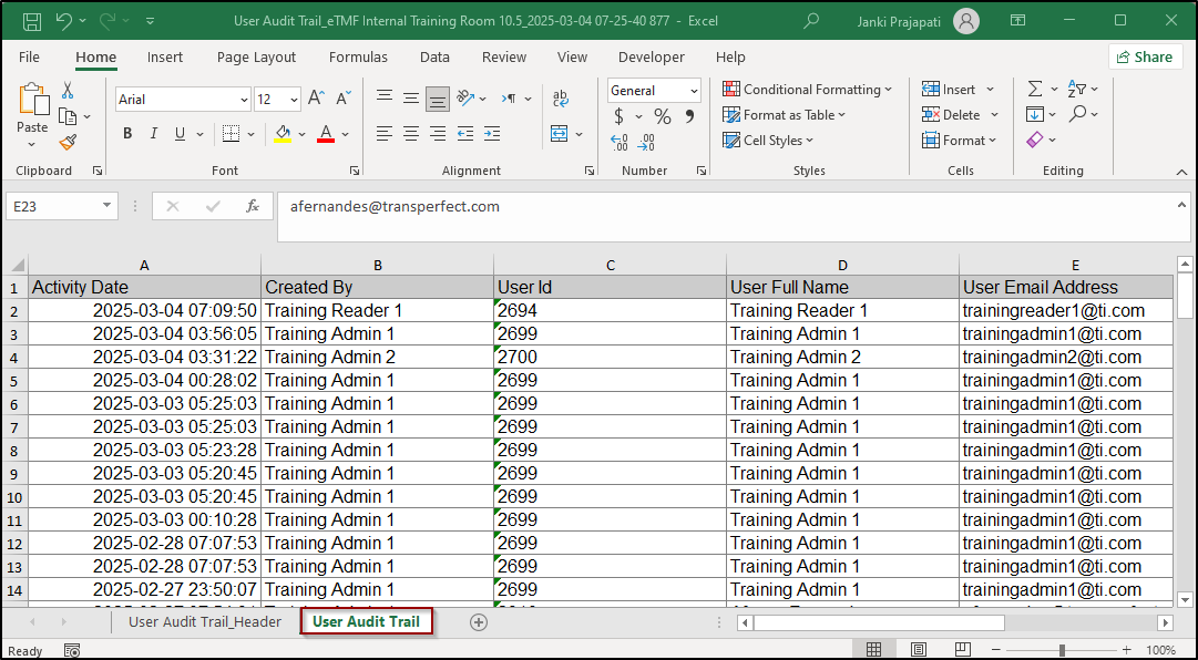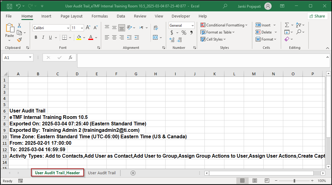 - Download the Microsoft Excel Worksheet containing the export data into the local system.