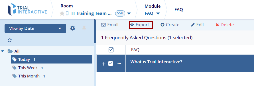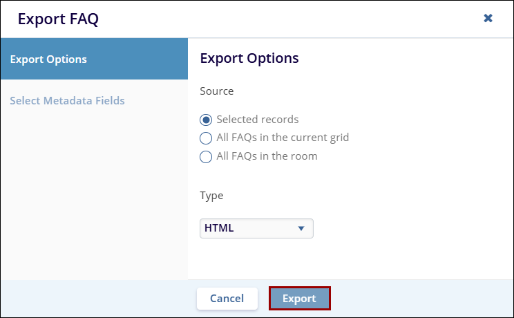 - On the Export FAQ page, select any one of the following from