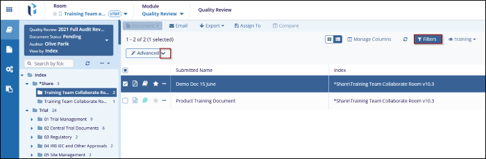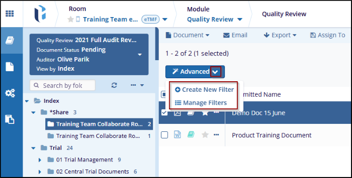 - Once the Create Filter is applied go back to the Advanced button and click the
