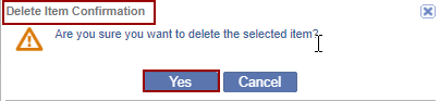 - A ‘Delete Item Configuration’ pop-up window is displayed.