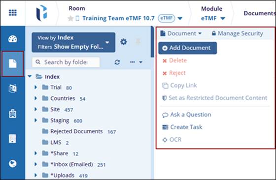 - The drop-down options are displayed. Select Add Document option.