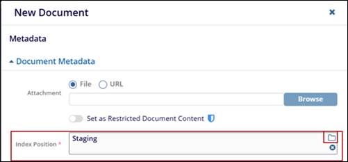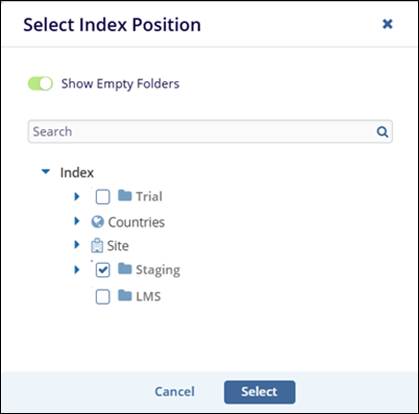- Index Position: The Select Index Position window will open, where the