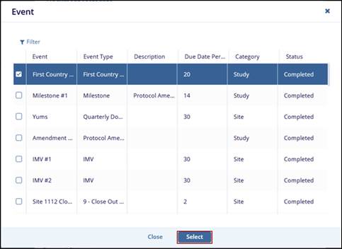 - Event: Where the user needs to select the Event from the Event