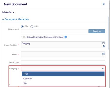 - Category: Need to select the Category where the uploaded document takes
