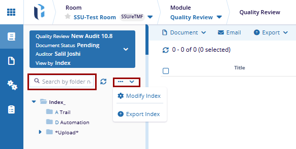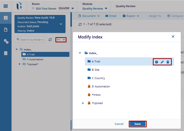 - Click on the three-dot menu and select the Modify Index option from the dropdown options, a new window will open, where the user can see folders have lock icons that are restricted folders that cannot be edited, and some are not locked folders that can be edited by selecting the Pencil icon.