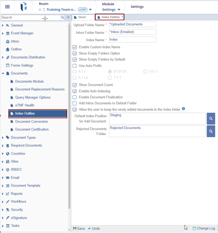 - If the checkbox is not selected, folder titles in the index will appear exactly as entered during the creation of the room’s index.