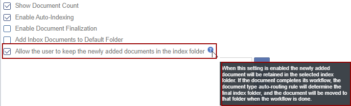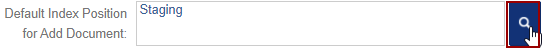The default location for documents that have been uploaded with metadata assigned is indicated in the ‘Default Index Position for Add document’ field.