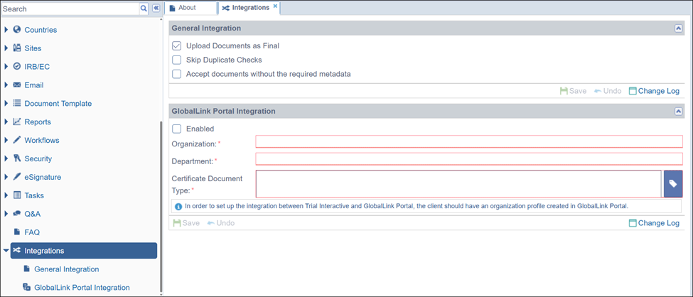 To configure the GlobalLink Portal Integration, perform the following.