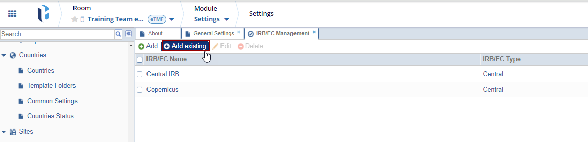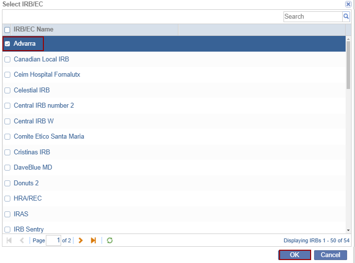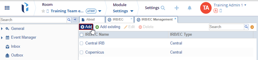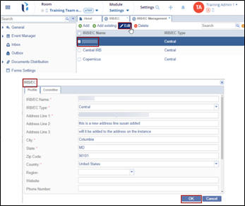The additional IRB/EC organizations can be added, edited, or deleted as needed from this menu.