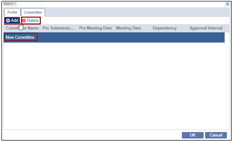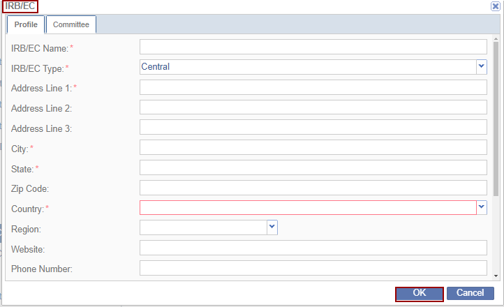Click the Add button. The IRB/EC window is displayed with the Profile tab by default.