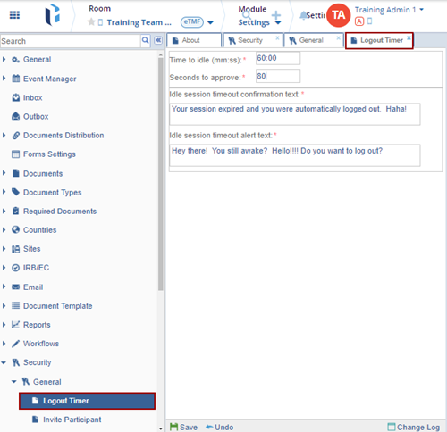 - Enter the message that the user sees on the screen when the user is automatically logged out due to an idle session in the Idle session timeout alert text.
