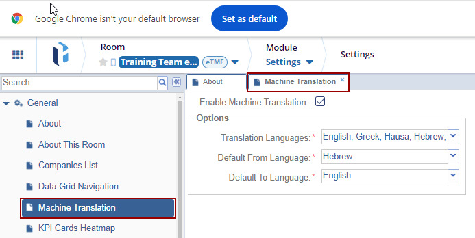Example: If most of your content is written in English, you would set "Default From Language" to English.