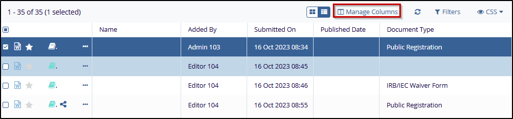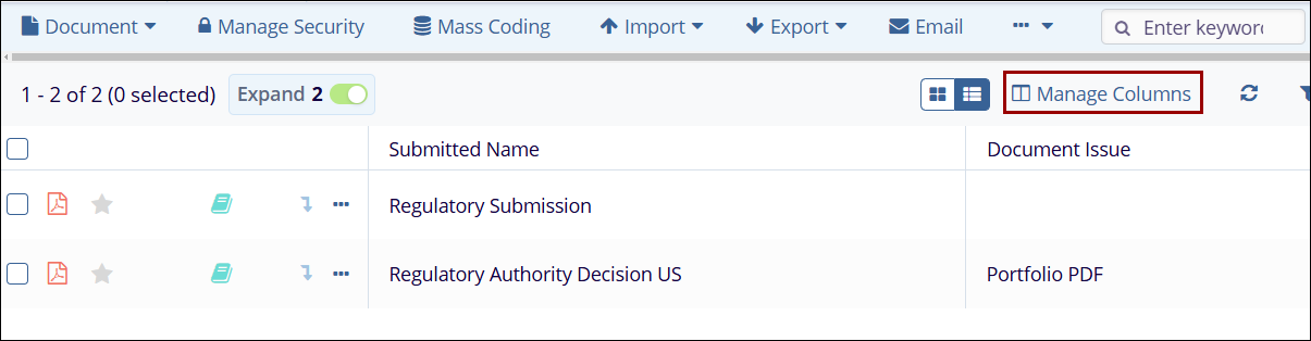 - Click the Manage Columns button from the top-right corner of