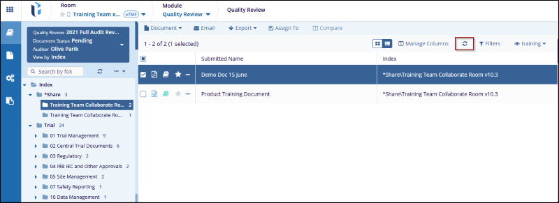 - Once the changes are applied, the user can click the Refresh icon to refresh