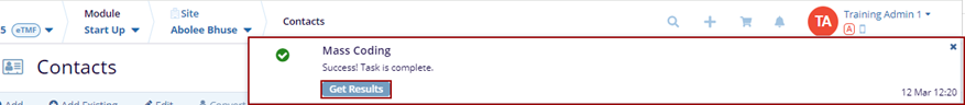 The Mass coding functionality allows users to apply metadata updates in bulk to all or selected contacts.